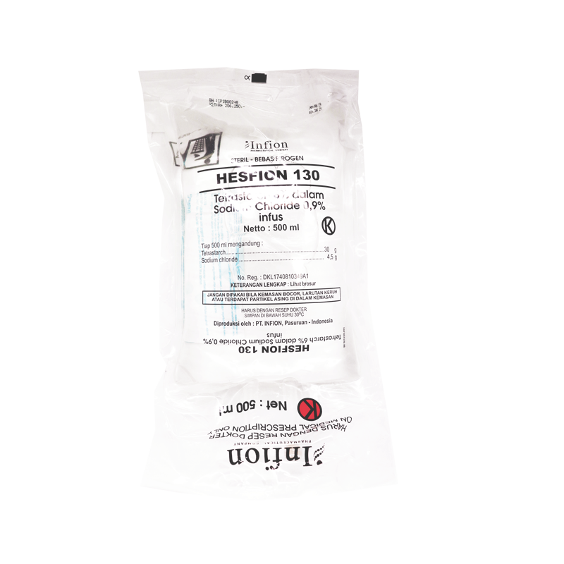 Composition : Hesfion 130 Infusion, each 500 ml contains Tetrastarch and Sodium chloride