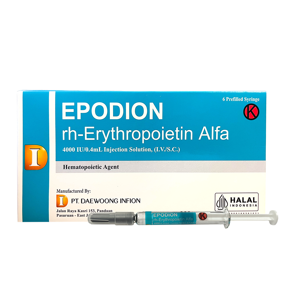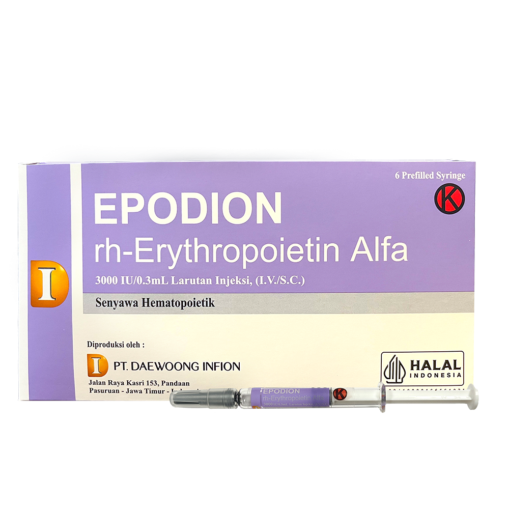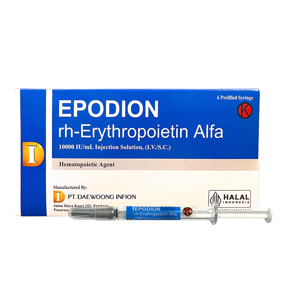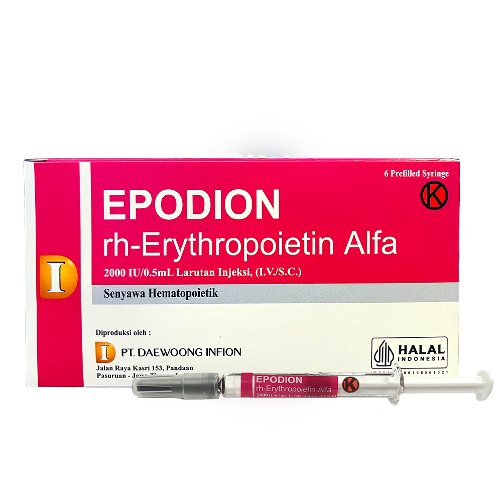 Komposisi : Epodion® Setiap PFS (Pre-Filled Syringe) mengandung Recombinant Human Erythropoietin Alfa.